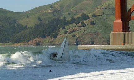 Gordon was (he passed away a few years ago) someone in life that could be counted on more than anyone outside of my family that I had ever met. He will be at the pool. He will be there before you get there and he will be there after you leave. He will say very little to you, but you damn well better listen. this man has seen it all and only shares with you what you need to know at the time. He taught me how to sail, or maybe he tried to dump me out beyond the Golden Gate and just couldn’t do it. Either way, those Saturday excursions out on the old Cal 20(sailboat) were absolutely priceless. A Cal 20 is a sailboat that is so heavy it actually shouldn’t float, but it does. The mast is not high enough to catch wind, but it does. It beats the odds. It was the perfect boat for Gordon. I got the pleasure of sailing on its last trip with Gordon as its owner and was even given the helm at one point. It was a day that was very typical in the San Francisco Bay. It was hot, cold, windy, calm, wet, and dry throughout the three plus hours we were out. We went outside the gate(under the Golden Gate Bridge), and proceeded directly through the center of the potato patch.