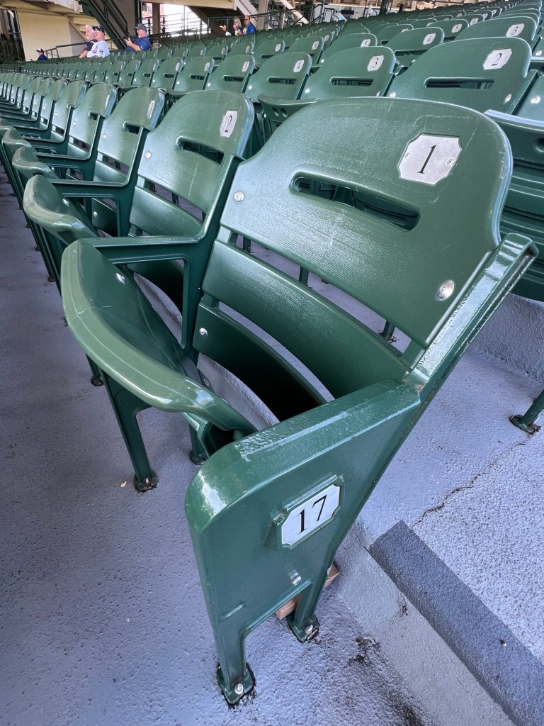 So, for about 30-40 games per season, you’ll find us there, in OUR seats. They are covered by the awning, they are unobstructed, they are freezing on opening day, they are perfect all Summer, and the hotdogs in October in these seats are just the best ever!